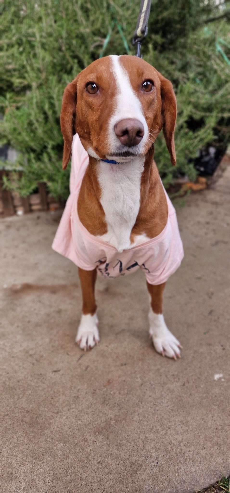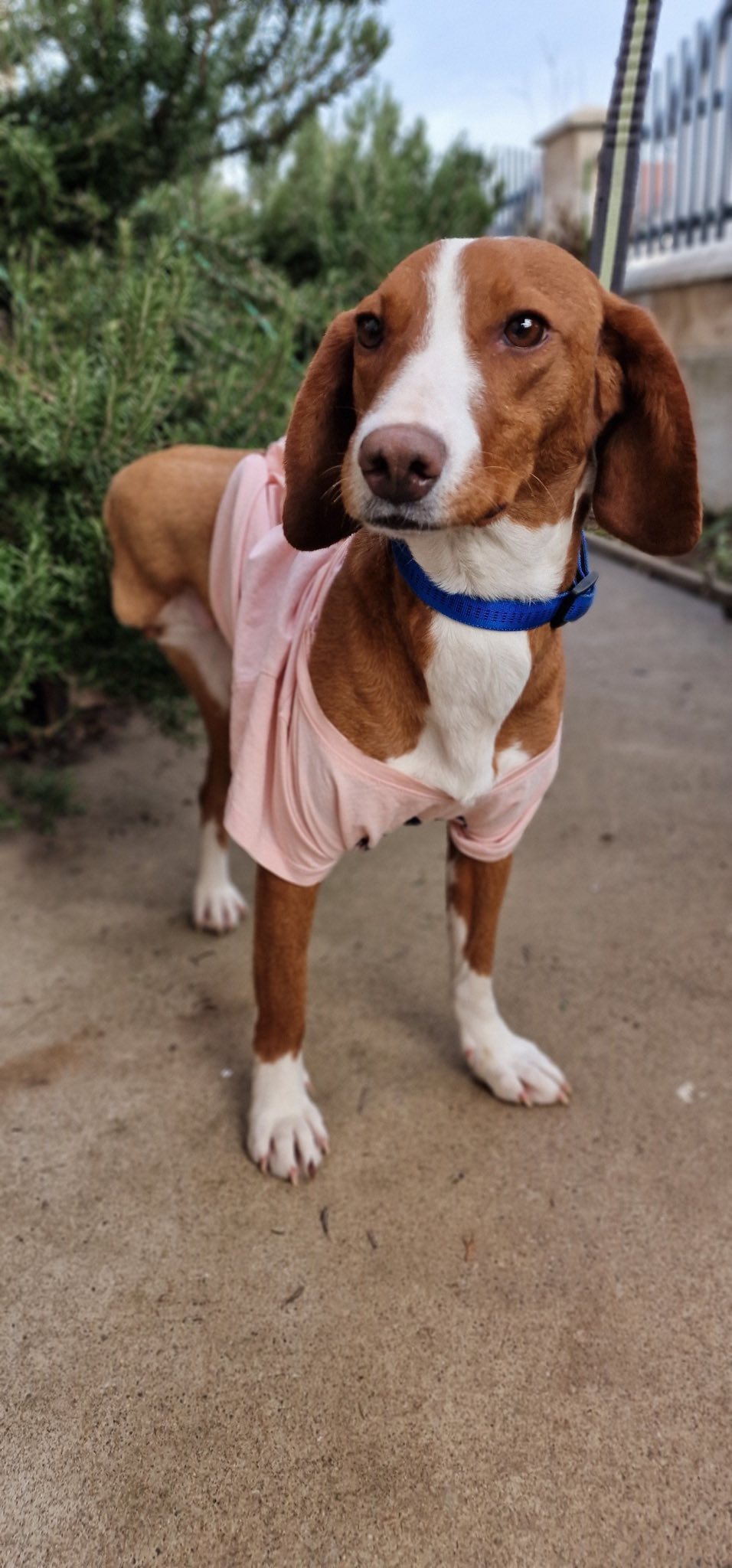 Skønne lille Ivy blev fundet på gaden. Hendes ben var ødelagt- sikkert pga påkørsel, og det kunne ikke reddes. Ivy lever derfor i dag uden det ene bagben. Men dette stopper hende bestemt ikke i at være en glad og kærlig lille hundepige.
